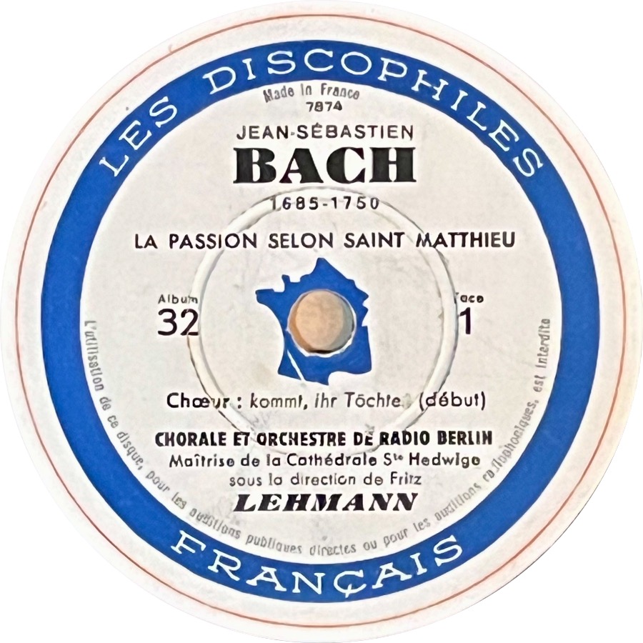 このフリッツ・レーマンのSPレコードは、≪マタイ受難曲≫の録音史上、4つの点でとても重要な意義を持つ。